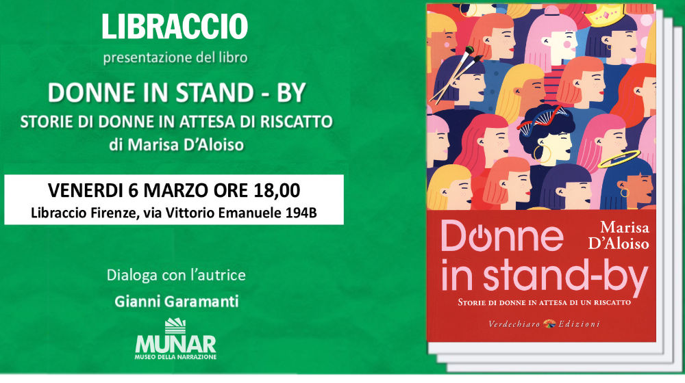 Venerdì 6 marzo alle ore 18, alla libreria Libraccio-Dalmazia, Gianni Garamanti del Museo della Narrazione presenta il libro di Marisa D’Aloiso “Donne in stand-by. Storie di donne in attesa di un riscatto” (2025, Verdechiaro).