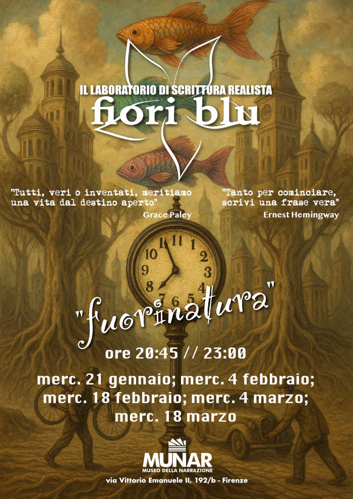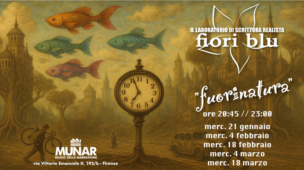 Da mercoledì 21 gennaio, una volta ogni due settimane, tornano i 5 incontri del laboratorio di scrittura realista più noto e seguito al mondo (anche perché di fatto è anche l’unico al mondo…): merc. 21/01 – 04/02 – 18/02 – 04/03 – 18/03, con ritrovo alle 20.45 in via Vittorio Emanuele II 192/B a Firenze e inizio improrogabile sempre alle 21.